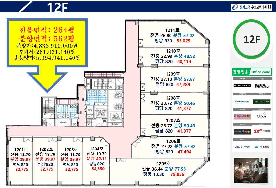 총 15층 건물 중 12층 전체를 단독으로 사용할 수 있어, 대형 병원, 학원, 사무실, 또는 프랜차이즈 본사 등 규모 있는 사업체를 계획하고 계신 분들에게 최고의 선택이 될 것입니다.