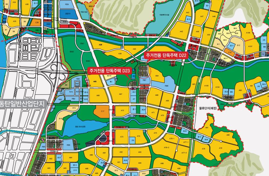 동탄2 D22블록은 동탄2신도시 내 희소한 주거전용 단독부지로 도서관, 초등학교, 호수공원 인접 입지해 있으며 매매 토지는 코너필지로 개방감 및 상품성 우수합니다.
